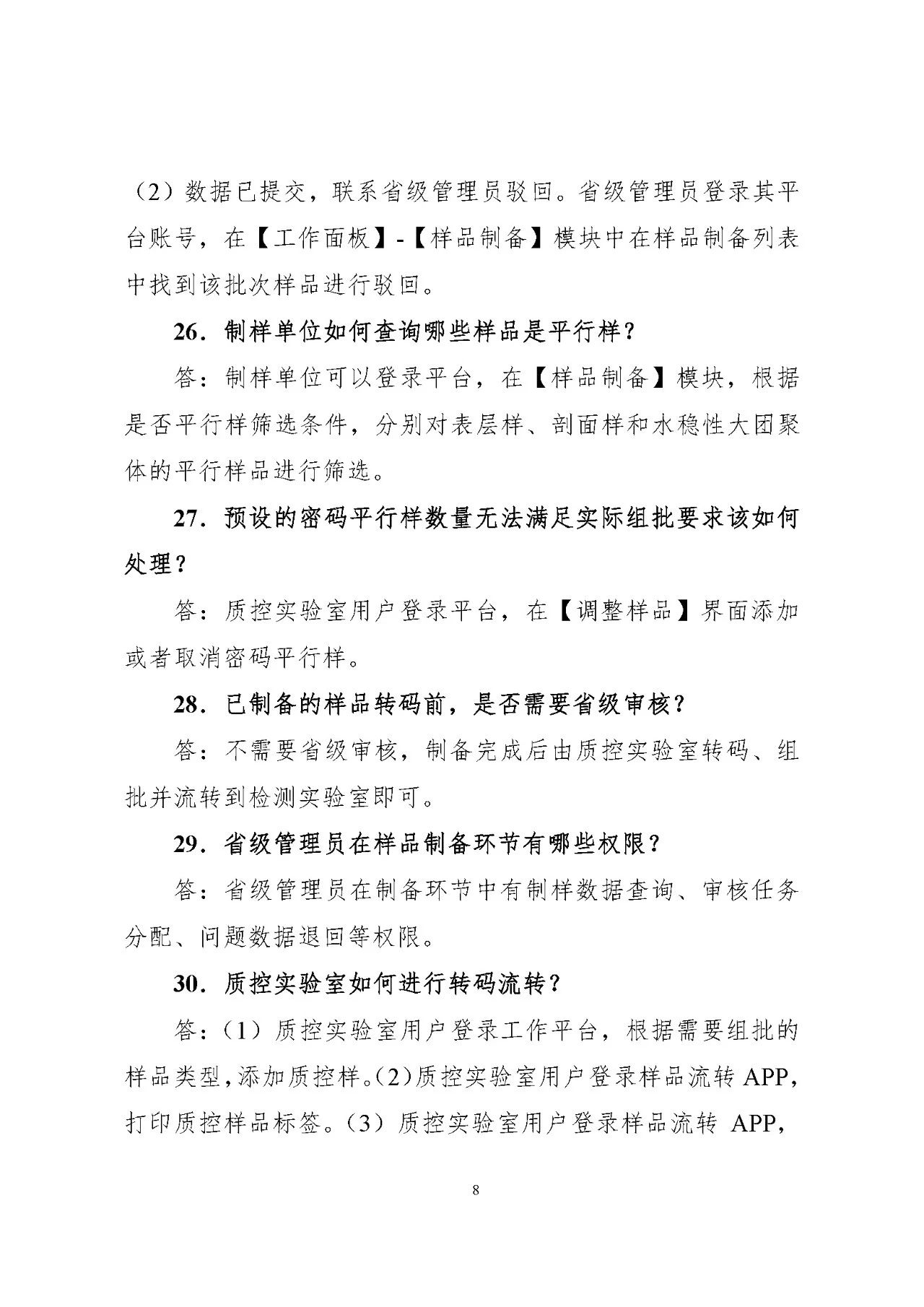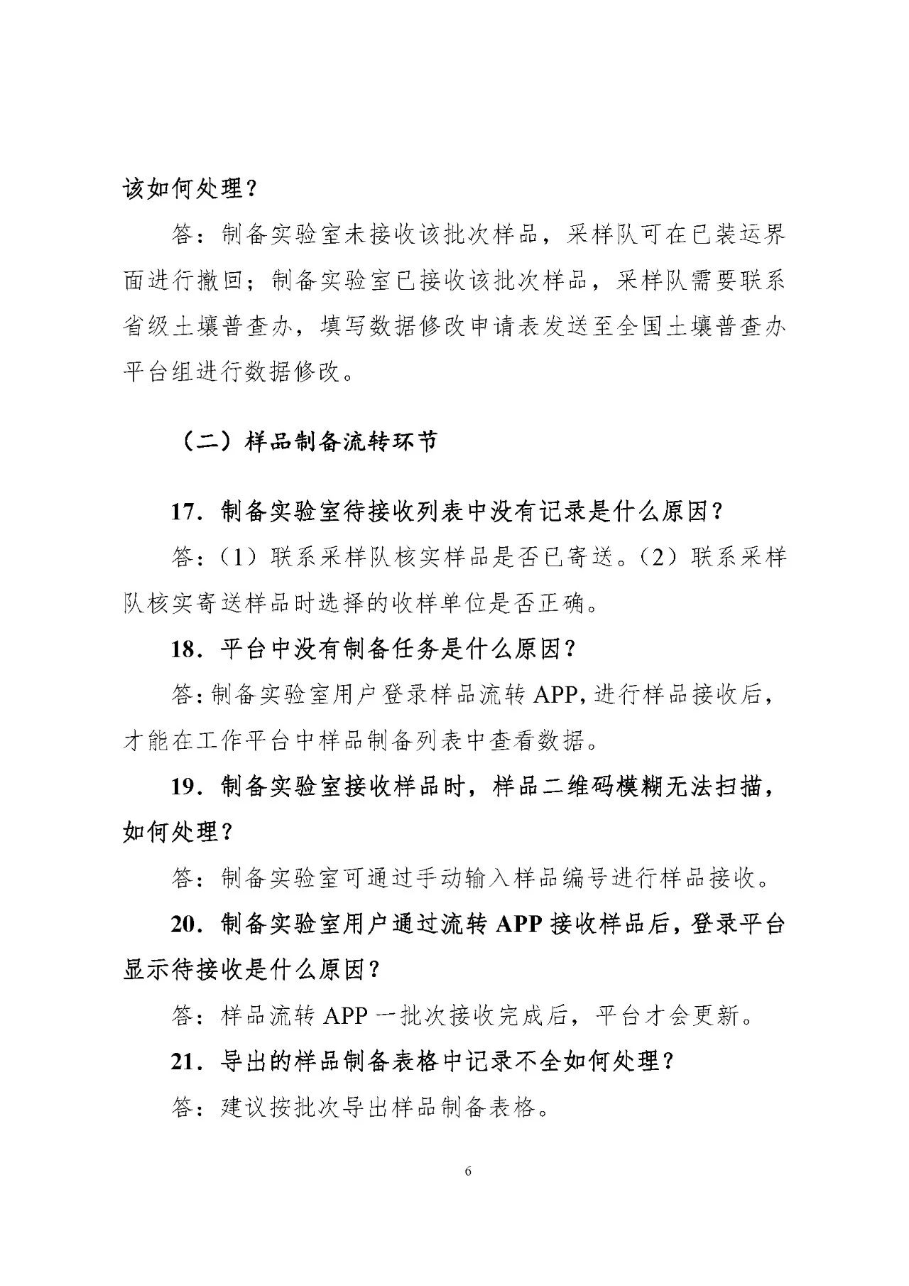 近期,國務院第三次全國土壤普查領導小組辦公室組織第三次全國土壤普查專家技術指導組,基于新發布的《第三次全國土壤普查技術規程(修訂版)》等技術規程規范,對關于平臺應用、外業調查采樣、內業樣品制備與檢測等問題進行更新完善,形成《第三次全國土壤普查常見技術問題答疑手冊(修訂版137問)》,供各地參考。《第三次全國土壤普查常見技術問題答疑手冊(第1期139問)》自即日起廢止。 如對解答內容存疑請聯系責任編輯: 錢建平 (平臺應用),010-82108770,qianjianping@caas.cn; 吳華勇 (外業調查采樣),010-59191216,hywu@issas.ac.cn; 鄭 磊(內業樣品制備與檢測),010-59196343,trjcbz@126.com。 附件:第三次全國土壤普查常見技術問題答疑手冊(修訂版137問)