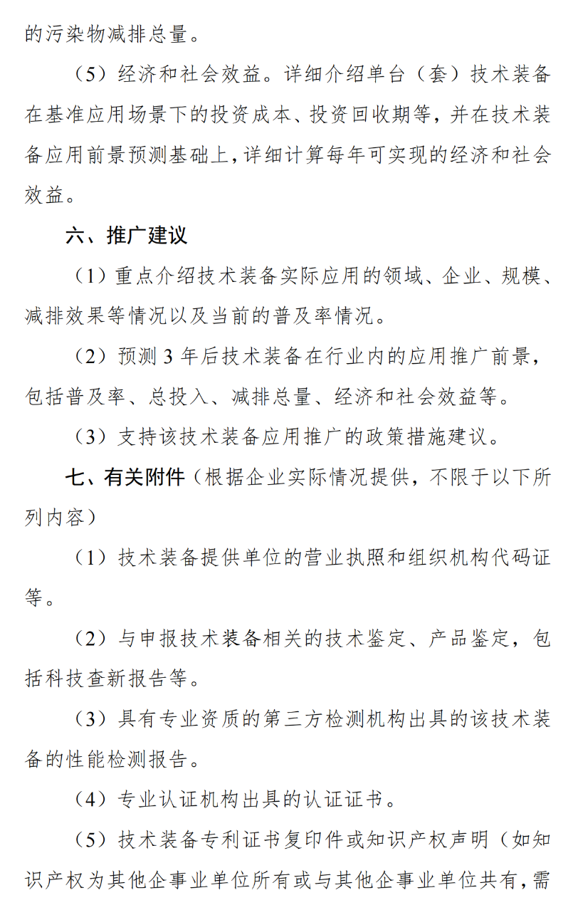 推薦范圍包括大氣污染防治、水污染防治、土壤污染修復、固體廢物處理、噪聲與振動控制、環境監測專用儀器儀表、環境污染防治專用材料和藥劑、環境污染應急處理、環境污染防治設備專用零部件、減污降碳協同處置10個重點領域。