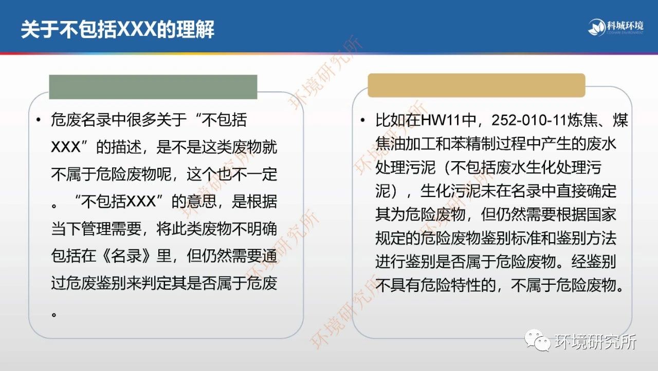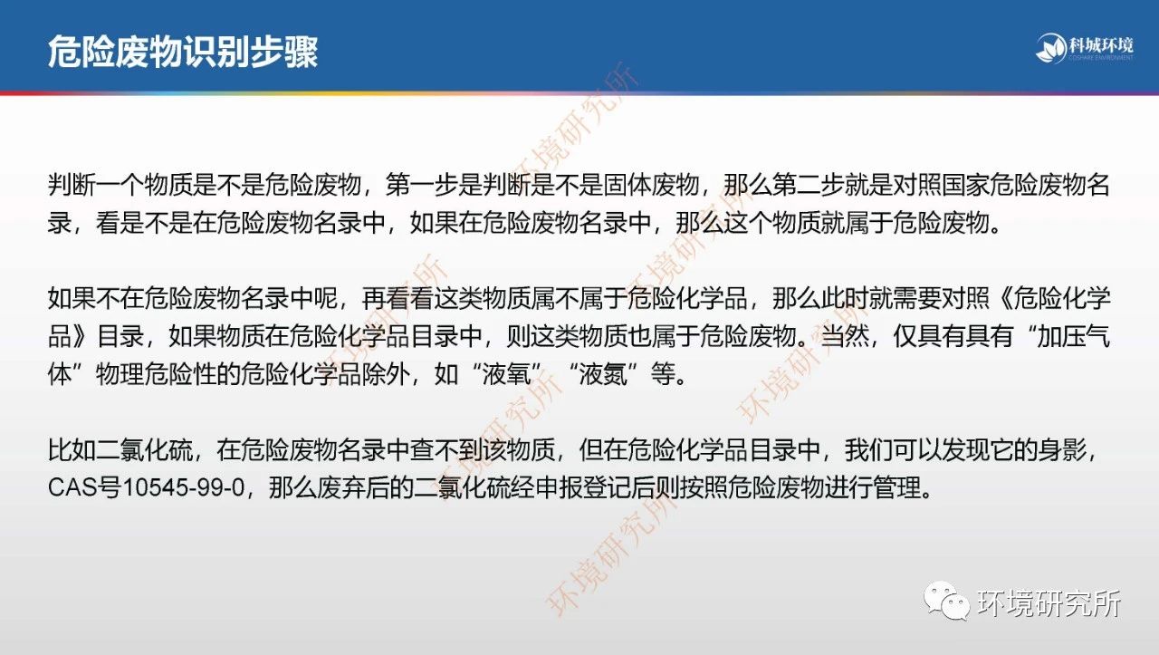 本文梳理了危險廢物識別的技術體系,危險廢物識別的步驟,并針對危險廢物識別過程中的一些特殊管理要求,如廢棄危化品的管理、未納入名錄的管理、豁免管理、不包括xxx的理解、混合后的危險廢物屬性判定等進行了說明。