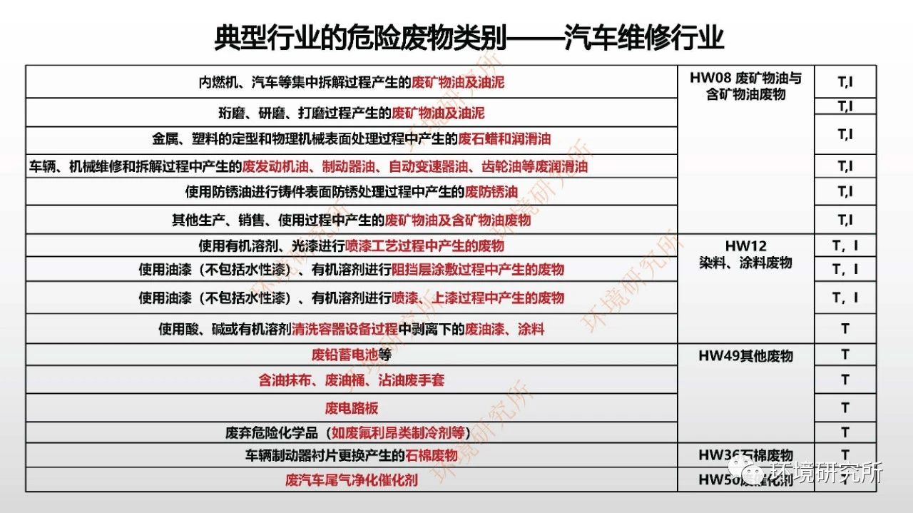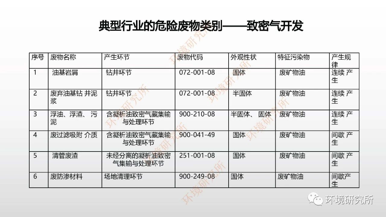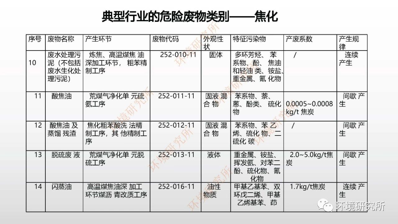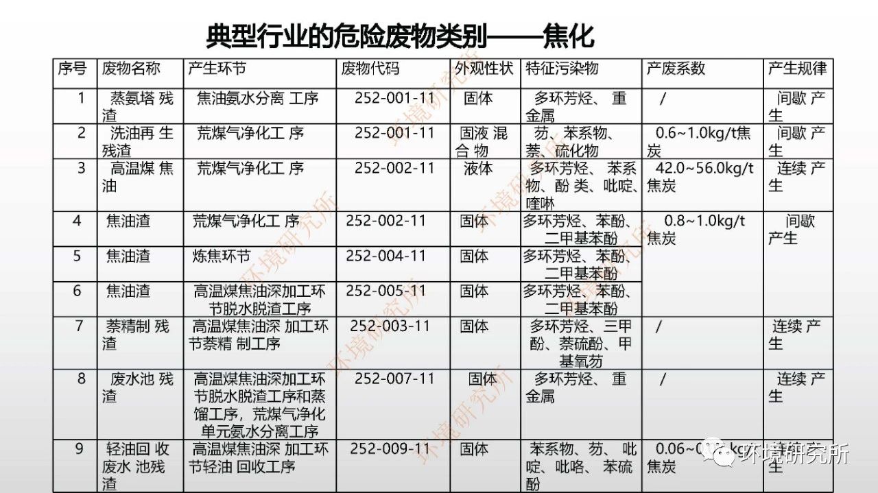 在此基礎上,對機動車維修行業、焦化行業、致密氣開發等行業危險廢物種類、產生環節、危廢類別、產廢系數等進行了整理,為相關企業危廢管理提供依據。