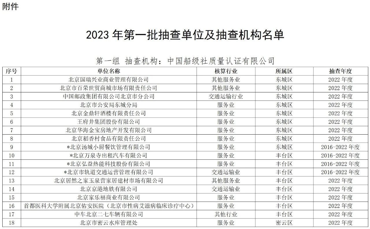 北京市生態(tài)環(huán)境局關(guān)于開展2023年第一批重點(diǎn)碳排放單位和一般報(bào)告單位抽查工作的通告通告〔2023〕17號(hào)